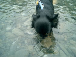 | 水中散歩中 | Takaのお腹は枕に最高♪ | 冷たいよ〜 |