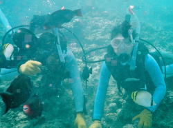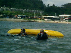 | アダンの実 | 沖縄の海サイコー!! | はんちょさんにシュノーケルの説明を受けて |