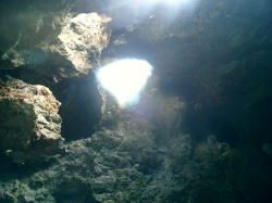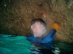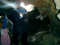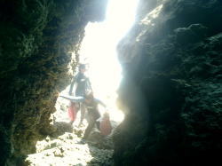 | ようやく洞窟へ到着 | 洞窟の中はちょっと涼しい | 魚もキラキラ輝いて見えます |