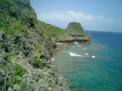 | 真栄田岬へ行ってきます | 凄い岩場を歩いて向います | 足場が悪いので、怖々のSho |