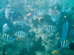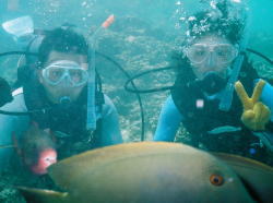 | うまく潜れましたぁ | 左下の口元が赤いのに噛まれました | びっくりするくらいの魚の大群 |