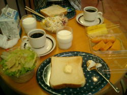 | 本日の朝食 | 最初は雲っていて | 風も結構強かったけれど・・・ |
