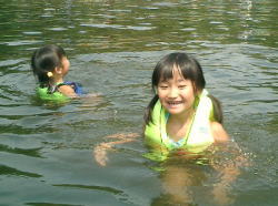 | 泳いでみようっと! | 背泳ぎ出来ちゃった | 満面の笑みがこぼれました |