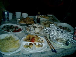 | フライドチキン調理中 | 火鍋 | 岩ちゃん特製パエリア |