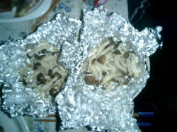 | 夕飯できましたぁ〜 | しめじのホイル焼き(Mちゃん作) | アボガド生ハム巻き(M&Kちゃん作) |